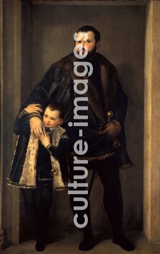 Veronese, Paolo (1528-1588), Conte Iseppo da Porto with his son Adrian, Oil on canvas, Renaissance, ca 1552, Italy, Venetian School, Galleria degli Uffizi, Florence,