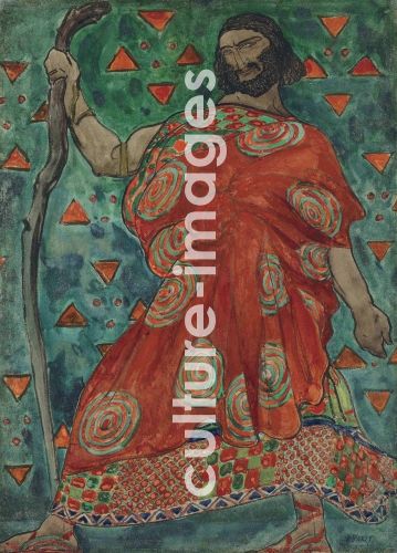 Bakst, Léon (1866-1924), Costume design for drama Oedipus at Colonus by Sophocles, Watercolour, gouache, gold on cardboard, 78x56, Theatrical scenic painting, 1904, Russia, Private Collection,