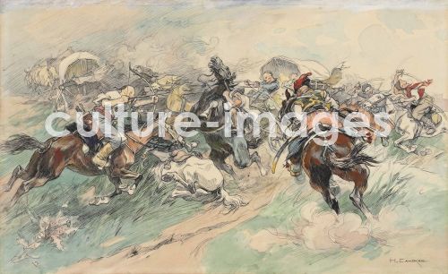 Samokisch, Nikolai Semjonowitsch (1860-1944), Saporoger Angriff, Aquarell und Tusche auf Papier, 28,2x46,2, Realismus, Russland, Privatsammlung,