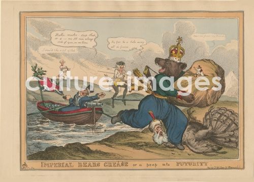 Heath, William (1795-1840), Imperial Bears Grease (Greece) or a peep into futurity. Caricature on the Russo-Turkish War, 1828-1829, Etching, watercolour, Caricature, 1828, Great Britain, Private Collection,
