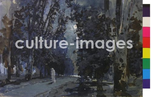 Levitan, Isaak Ilyich (1860-1900), The shadows. Moonlight night, Watercolour and ink on paper, 16x22, Realism, 1880s, Russia, Armenian National Gallery, Yerevan,