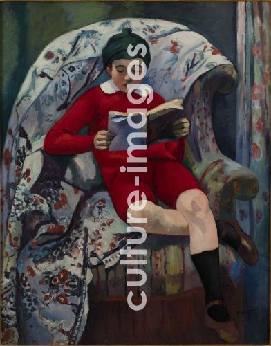 Manguin, Henri Charles (1874-1949), Claude en rouge lisant, Oil on canvas, 92x73, Fauvism, 1909, France, Private Collection,