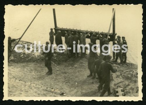 Europe, Ukraine, Kharkiv, WW II, German soldiers, pioneers working, water service on the water place, original description, photographer Bruno Feltz.