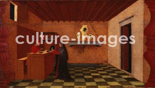Uccello, Paolo (1397-1475), The Miracle of the Desecrated Host (Predella Panel for the church of Corpus Domini in Urbino), Tempera on panel,Renaissance, 1465-1469, Italy, Florentine School, Galleria nazionale delle Marche, Urbino.