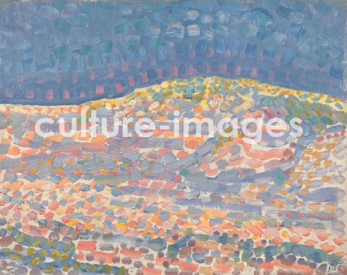 Mondrian, Piet (1872-1944), Pointillist study of a dune with a ridge on the right, Oil on canvas,De Stijl, 1909, Holland, Kunstmuseum Den Haag.