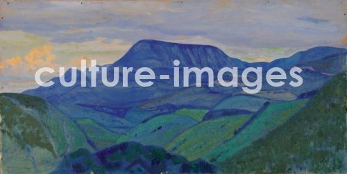 Roerich, Nicholas (1874-1947), The Blue Mountains. From the Caucasian Studies Series, Tempera on cardboard, c. 1913, Symbolism, Russia, Private Collection,