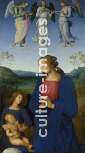 Perugino (ca. 1450-1523), The Virgin and Child with an Angel (Panel from an Altarpiece, Certosa), Oil on wood, Renaissance, c. 1500, Italy, School of Perugia, National Gallery, London,