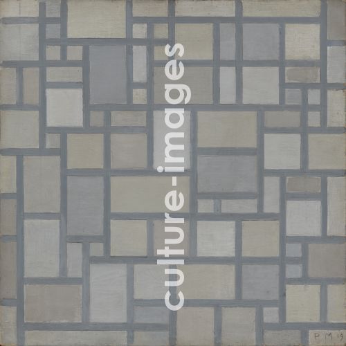 Piet Mondrian, Komposition in hellen Farben mit grauen Linien (Rasterkomposition 7)