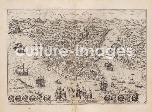 Braun, Georg (1541-1622), Constantinople. From Civitates orbis terrarum, Copper engraving, Cartography, 1572, Flanders, Private Collection,