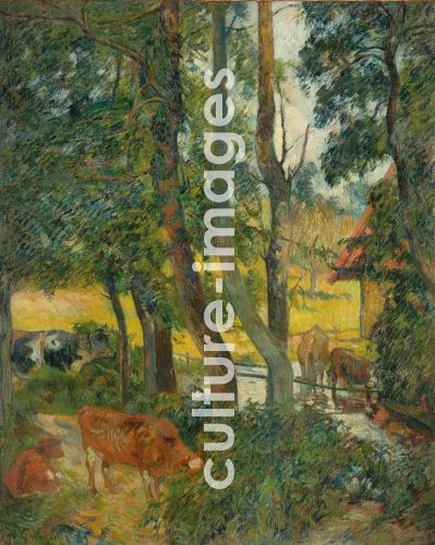 Gauguin, Paul Eugéne Henri (1848-1903), Landscape in Normandy (Cows at the Trough), Oil on canvas, Postimpressionism, 1885, France, Galleria d'arte moderna, Milano,